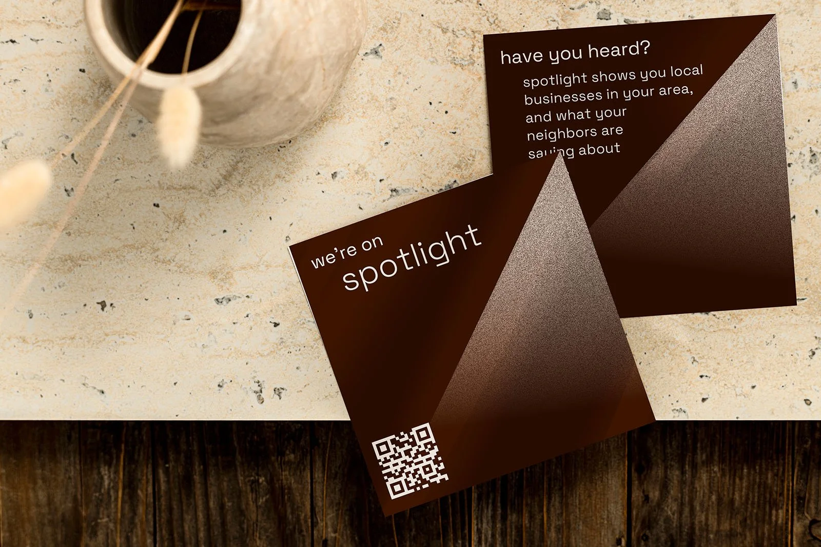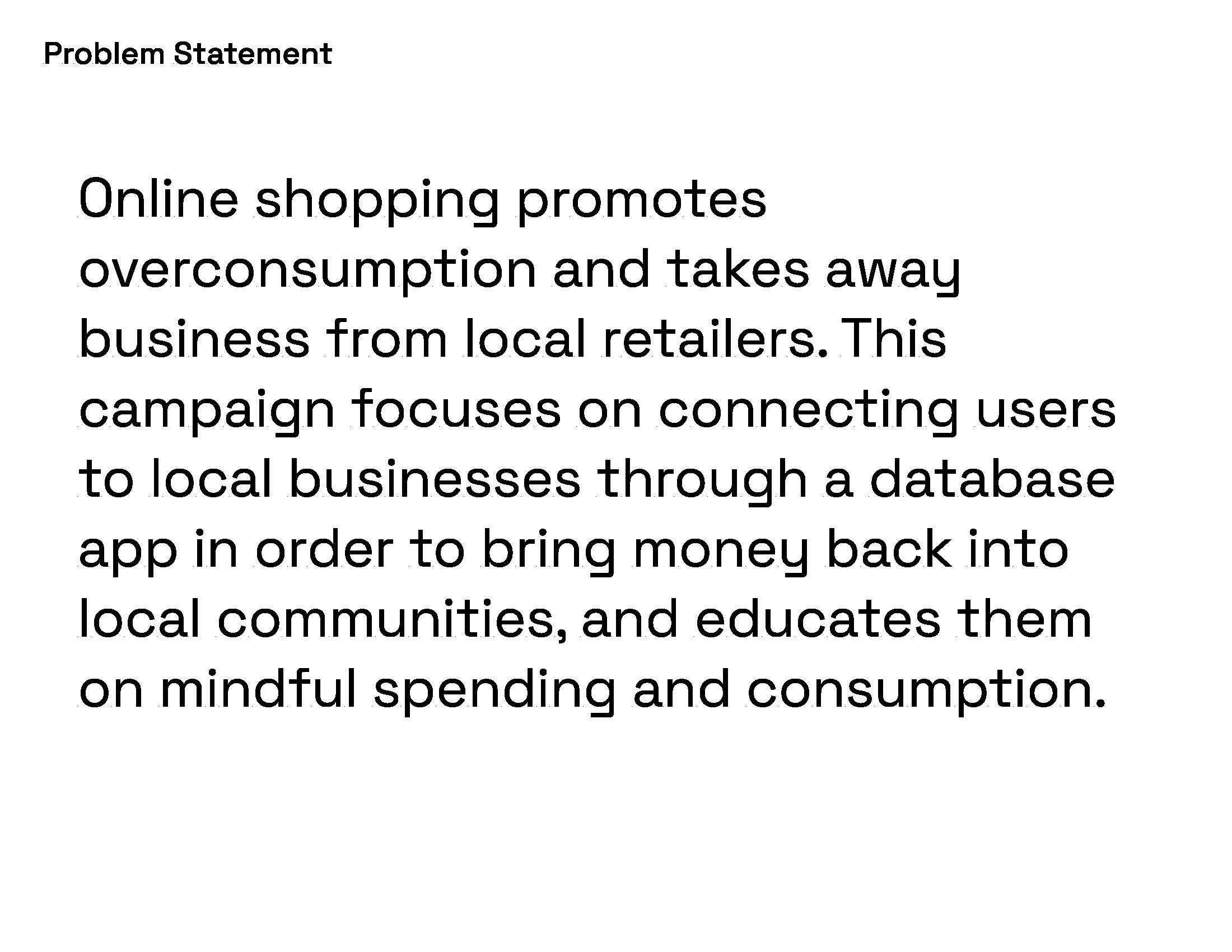 Spotlight is a concept for a campaign that promotes shopping at independently owned, local small businesses. This campaign includes an app that highlights shops, handouts for participating stores, and social media graphics telling the audience about the benefits of shopping locally. This campaign uses earthy, simple colors, photography, and modern typography to appeal to luxury shoppers and convey the environmental benefits of participating in your local economy. Check out a demo of the app here!